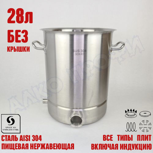Перегонный куб из пищевой нержавеющей стали AISI 304 кастрюльного типа. Используется с дистилляторами (самогонными аппаратами) в качестве емкости нагрева спиртосодержащих жидкостей.
