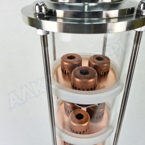 Флейта оснащена колпачками последнего поколения. Это колпачки двойного действия, которые способны и поддерживать уровень и пропускать пар. В отличии от колонн с большим количеством колпачков, а так же от колонн с переливным колпачком - колонны с колпачками двойного действия показывают большую эффективность и рабочую мощность.